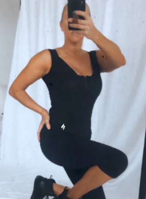Se ajusta al cuerpo como una camiseta deportiva ceñida: recoge, sujeta y ayuda a que todo quede visualmente más uniforme.